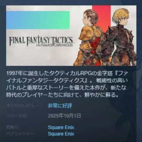 FFTリマスター、アンチの壮絶なネガキャンにも関わらずSteam売上トップでレビューも「非常に好評」