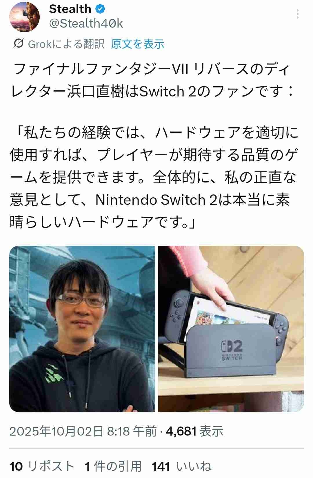 - ブランド復活とか目指すならSwitch2でちゃんと面白いFF新作を2〜3本続けて出さんとな
