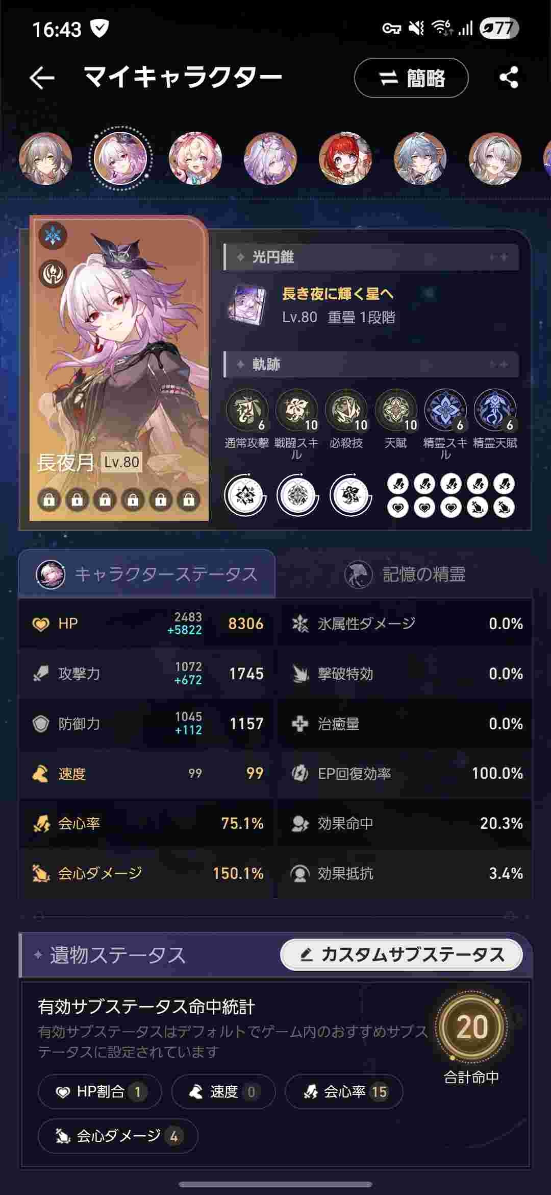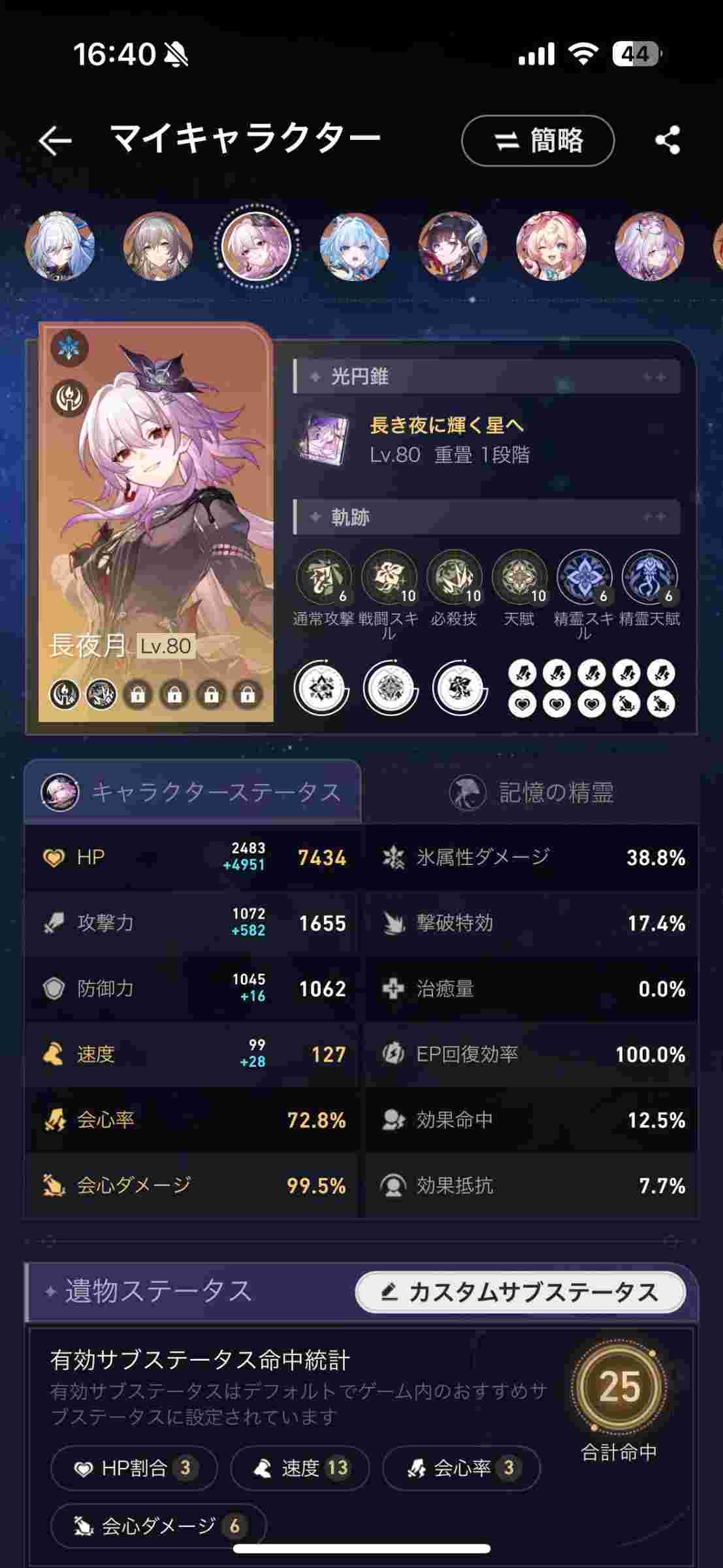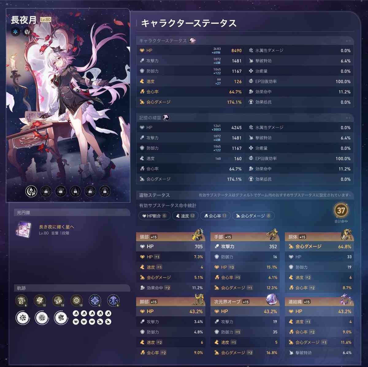 【相談】スターレイルの長夜月のステータスについての相談【画像】