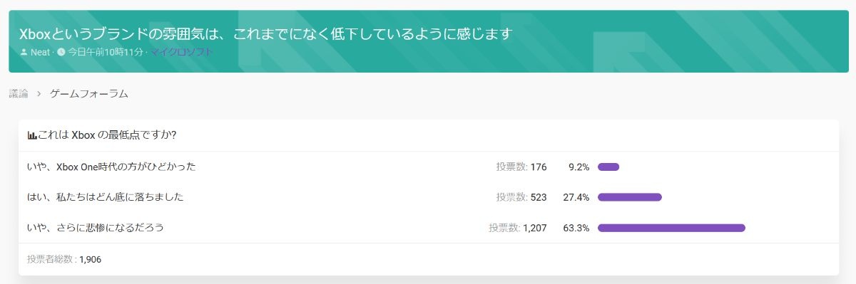 現在のXboxはXbox史上で最悪か?の質問に90%以上、史上最悪だの投票が集まるwww