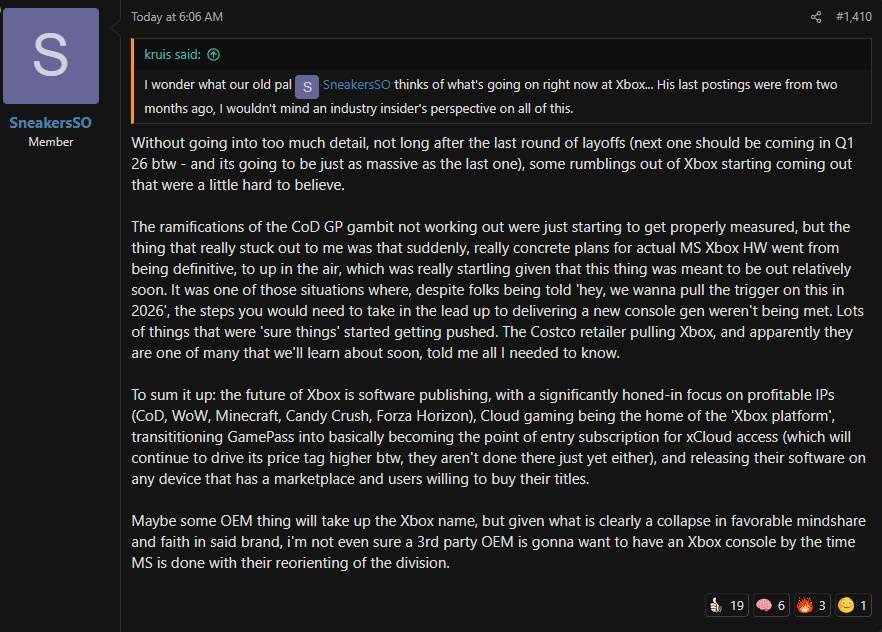 あまり細かくは書かないけど、前回のレイオフの直後、Xboxから出てくる話の中にちょっと信じがたいものがいくつかあった。