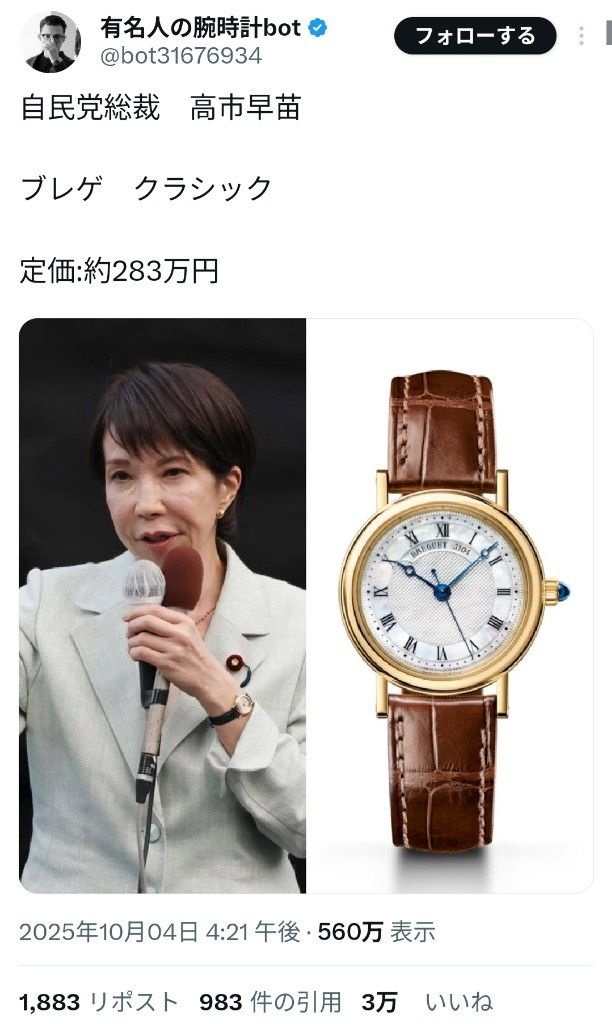 - 大物議員なら良い時計くらいしてほしいけどな・・