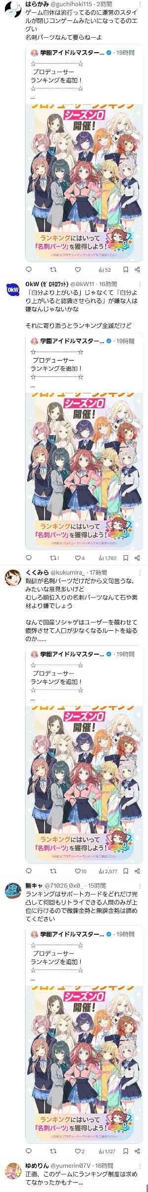 学園アイドルマスター、課金者優遇のランキングイベントに限定報酬を付け炎上してしまう