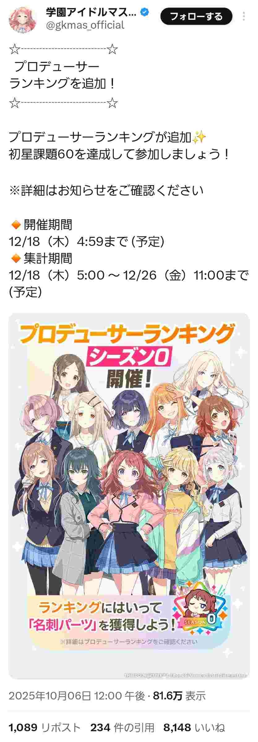 全体ランキングやから無課金は無理や - 20 : 2025/10/07(火) 07:31:45.453 ID:XOqnT3n0w