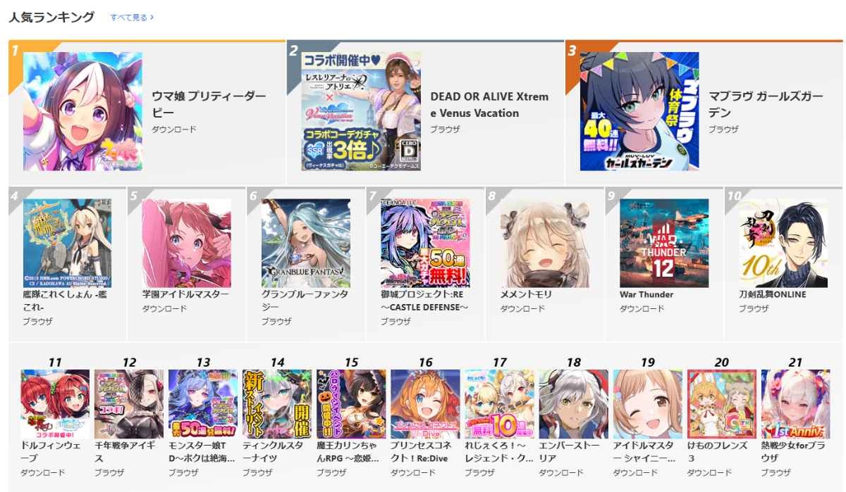 - DMMストアとか草野球レベルのランキングに意味あるんか