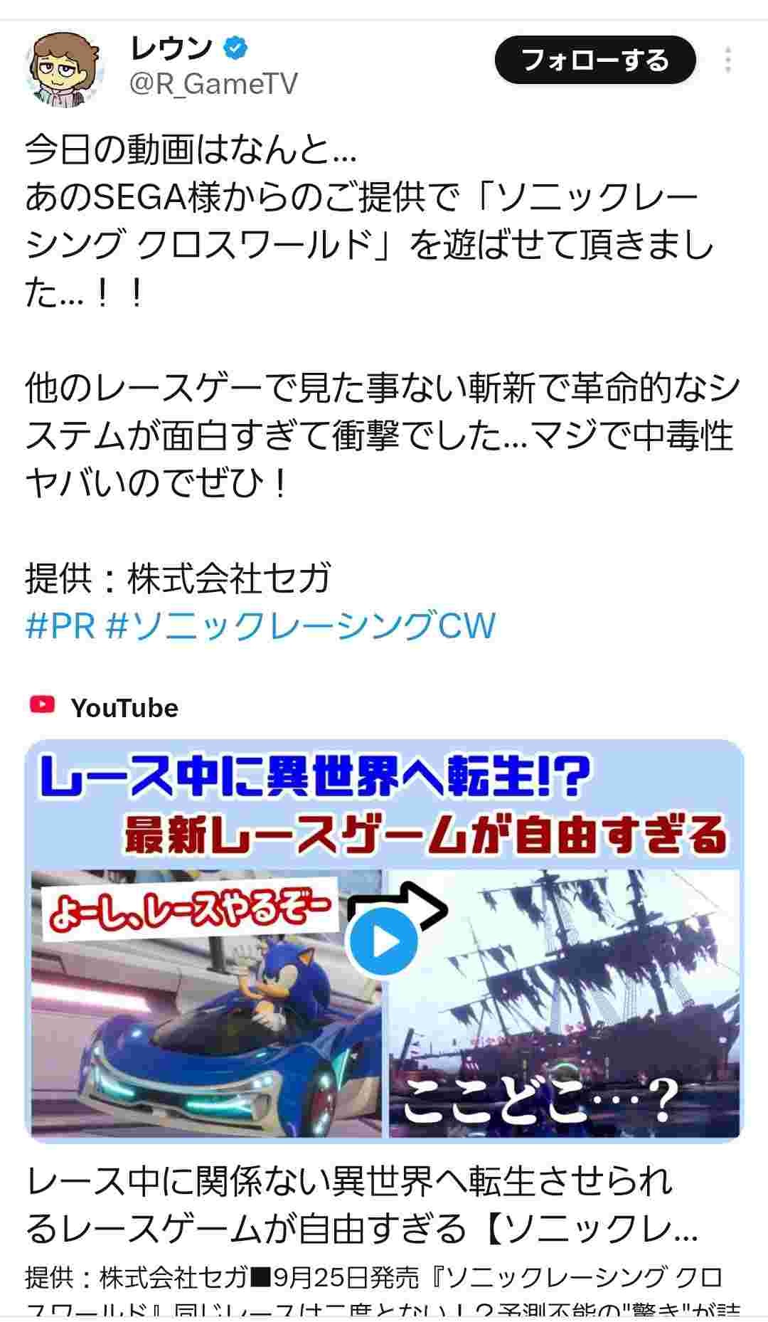 #PR #ソニックレーシングCW - 2 : 2025/10/09(木) 06:41:06.71 ID:OKD+mHSuM