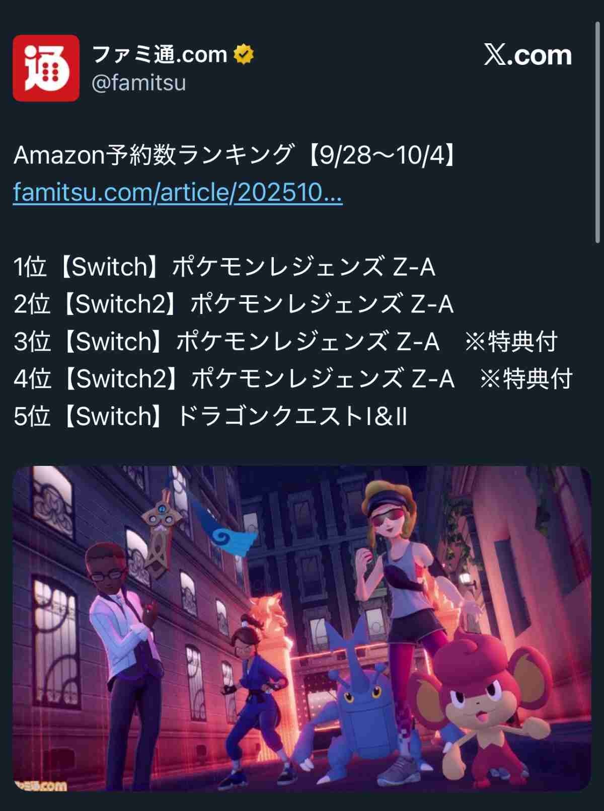 アルセウスの時よりも間違いなくポケモン自体の人気上がってるし、200万位行くのかな - 16 : 2025/10/10(金) 13:11:48.53 ID:cic+CVCU01010