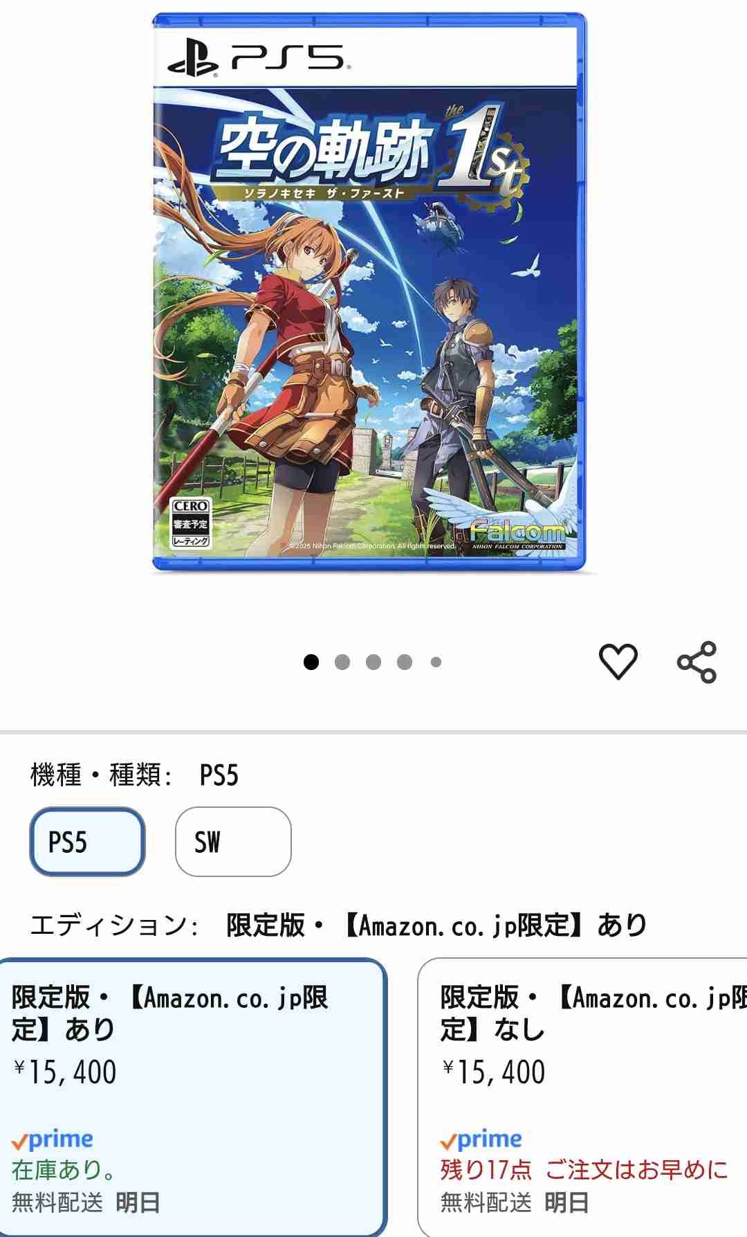 - 通常版も尼でPS5だけ17%値引きされてるね