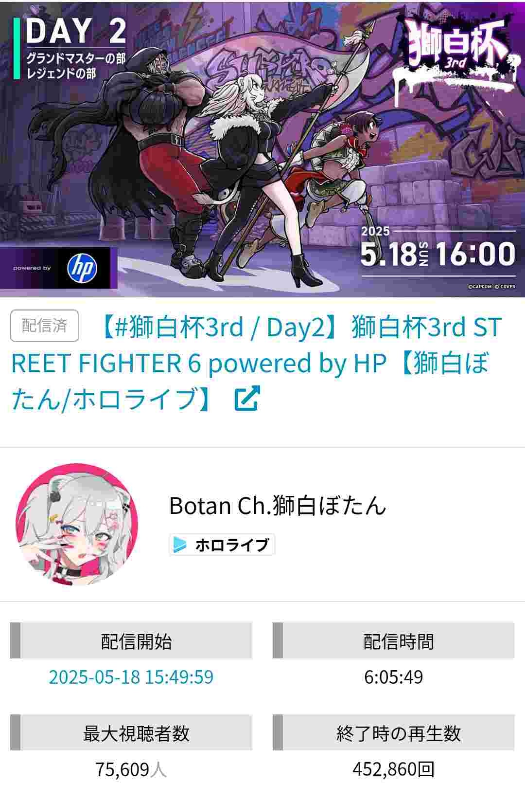 【画像】VTuber主催のスト6大会、前回から同接5万人減少w