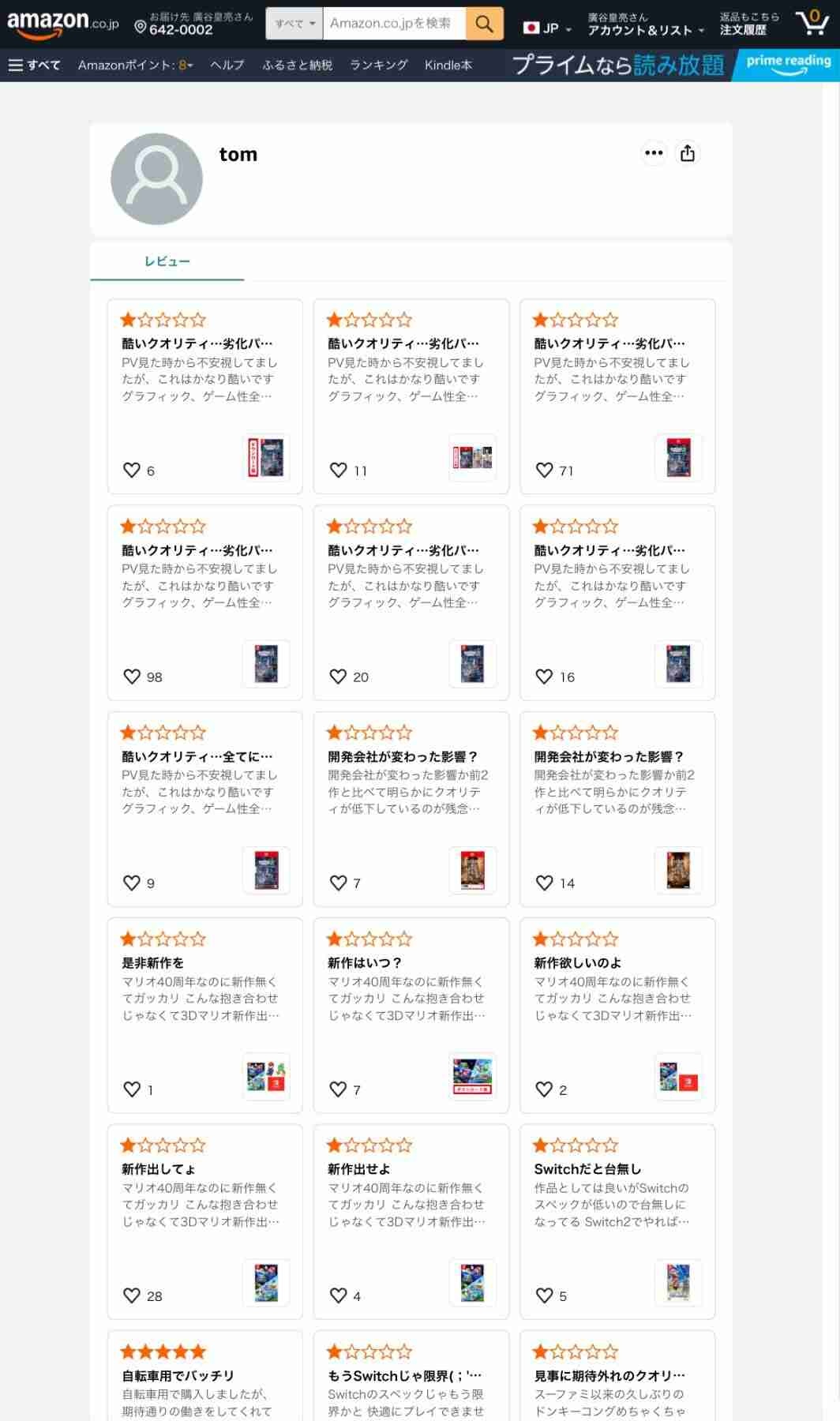 Amazonレビュー荒らし、Switchソフトを片っ端からコピペ批判