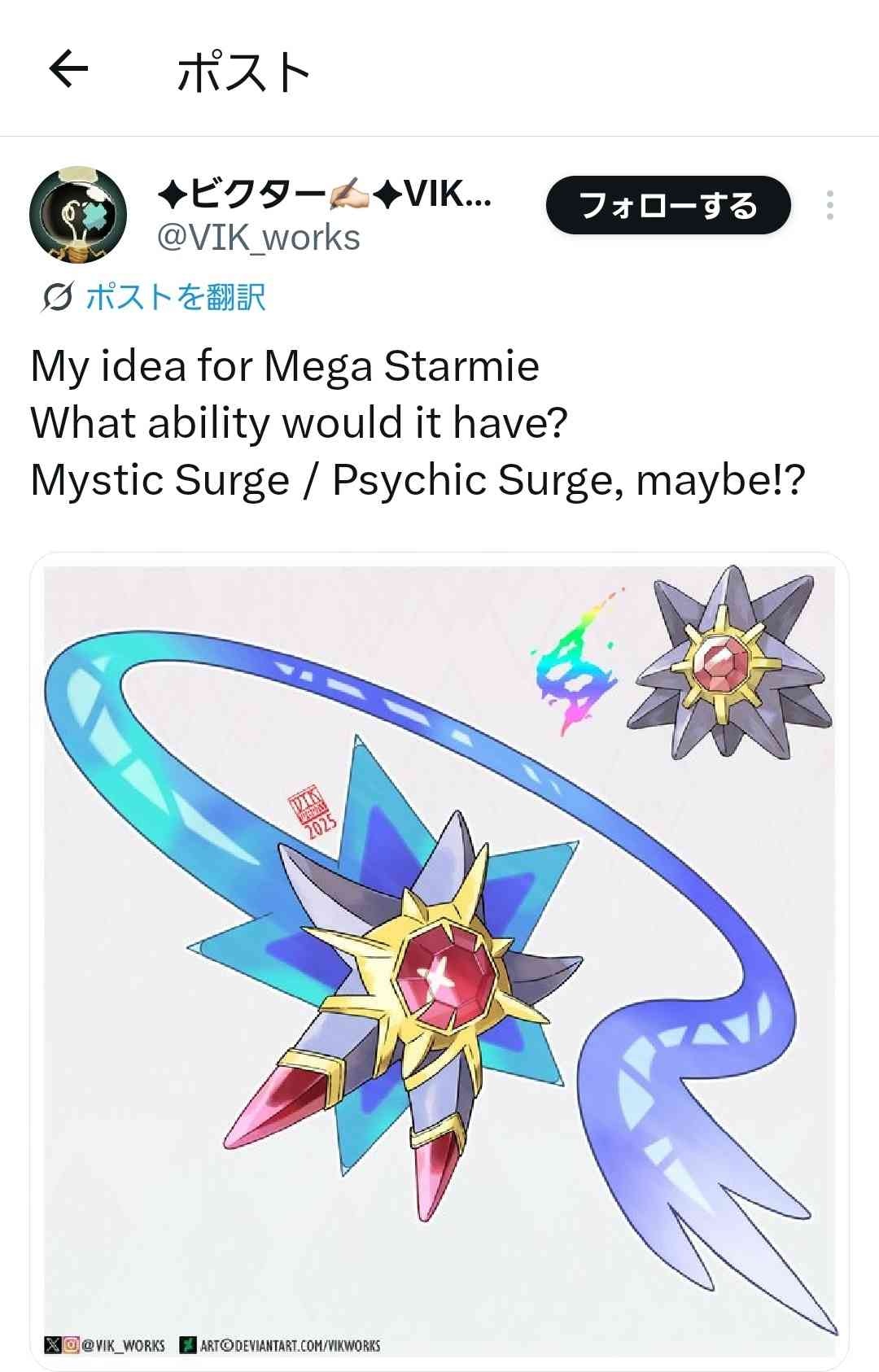 - 見た目要素的に退化するメガ進化系だとヒトデマンベースで今回の進化になるわな