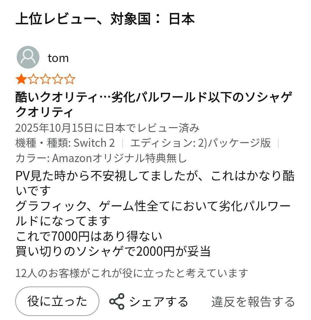 あとAmazonで買ったやつはゲームじゃなくてAmazonの特典が入ってないとかで星1つけてたりした - 53 : 2025/10/21(火) 18:34:58.876 ID:75ypN.Ih.