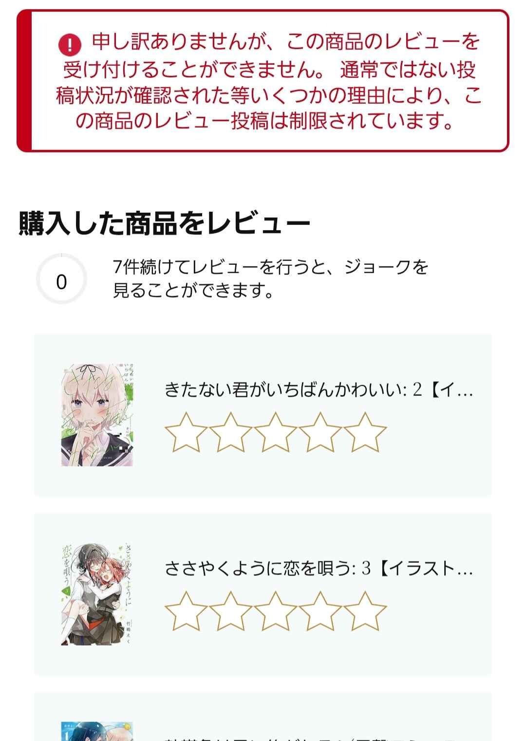 - 買わなきゃレビュー出来ない仕様のせいで注文してレビューかいてキャンセルするのが主流だからシステムにも迷惑がかかってるらしい