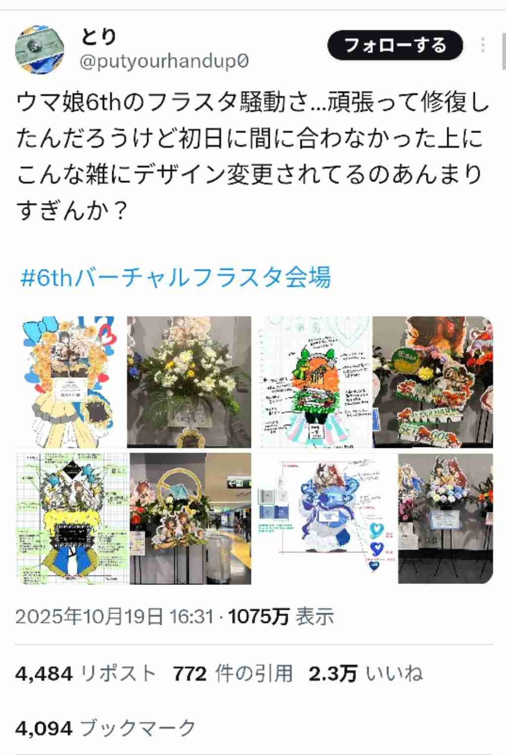 同じ日に開催しててフラスタ制作間に合うわけないんだよな - 22 : 2025/10/22(水) 09:46:40.849 ID:pW6US0QOc