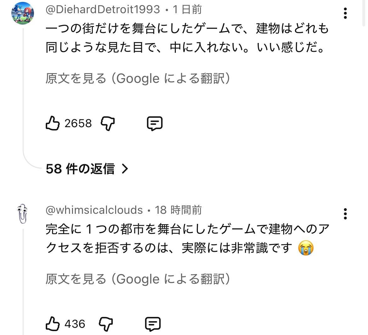 - 街のグラフィックに関してはパフォーマンスのためってリークされてたぞ