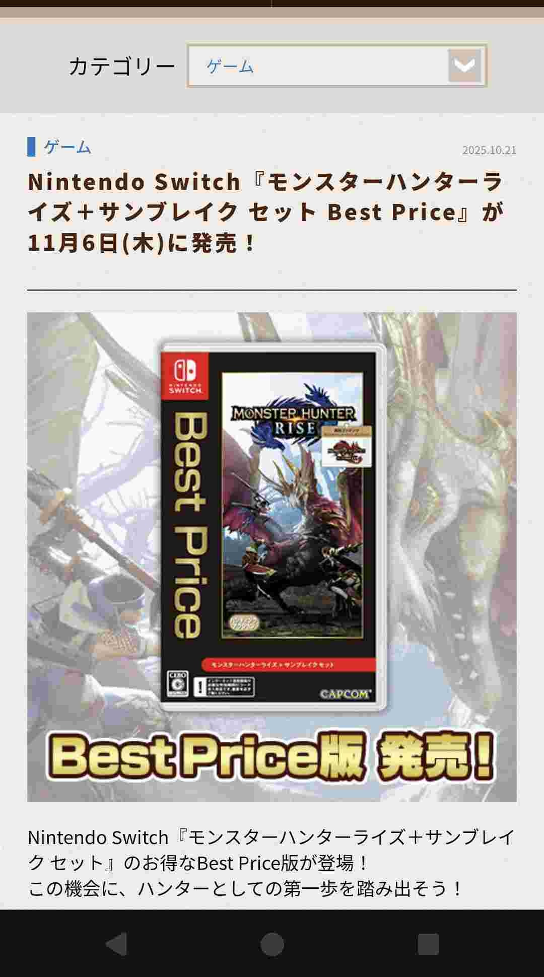 - Nintendo Switch『モンスターハンターライズ+サンブレイク セット Best Price』が11月6日(木)に発売!