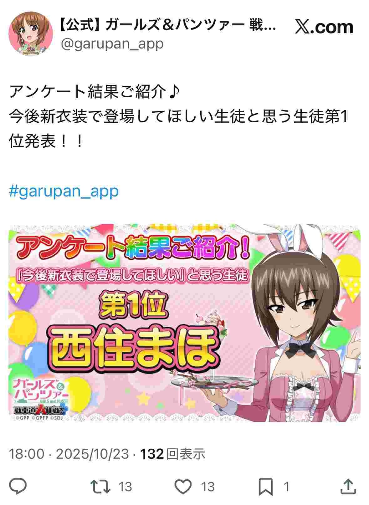 【画像】ガルパンのソシャゲ、人気キャラ投票、ついに1位が発表されるwww