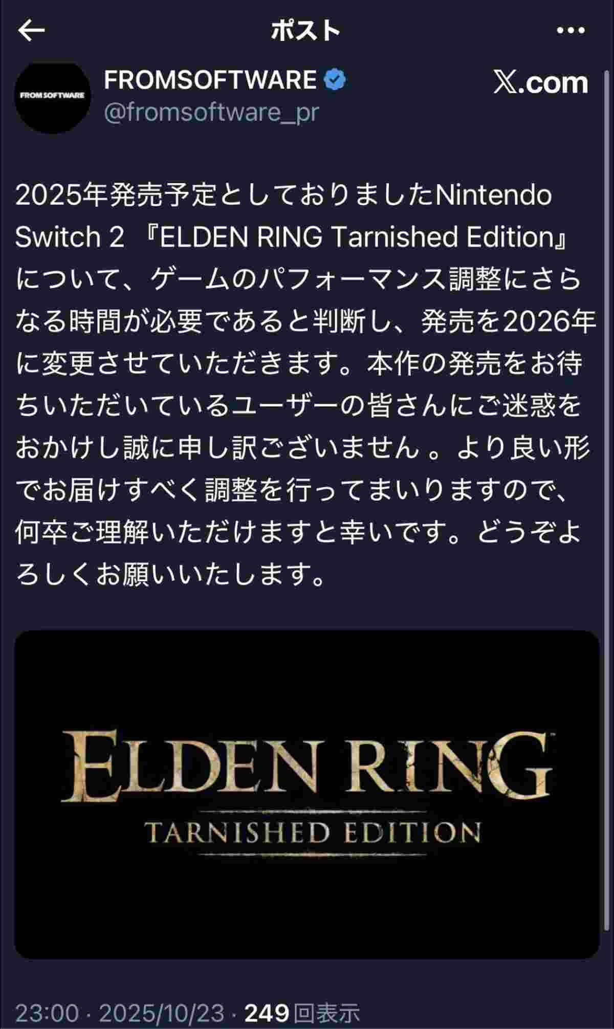 - https://x.com/fromsoftware_pr/status/1981359979119726764?s=46&t=F7gretG_DOfXcHXkfkXoQQ
