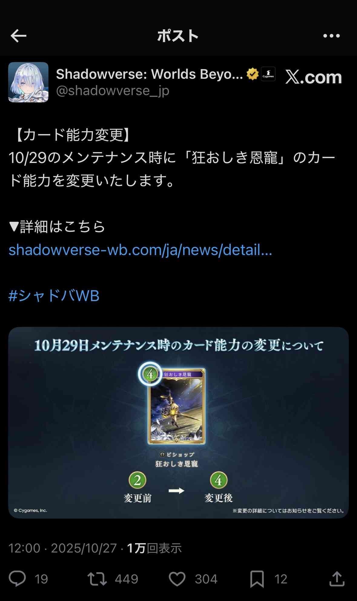 シャドウバースビヨンド、緊急ナーフで始まるwwwxwww