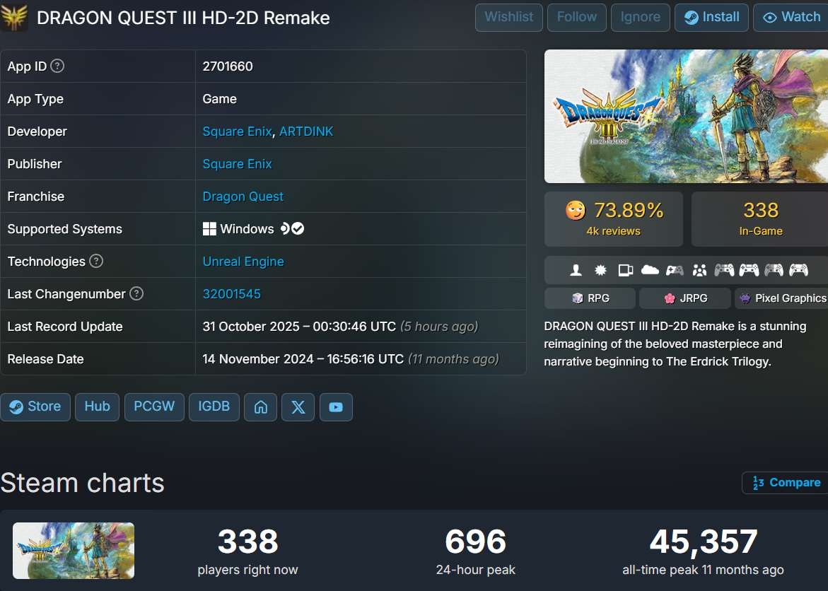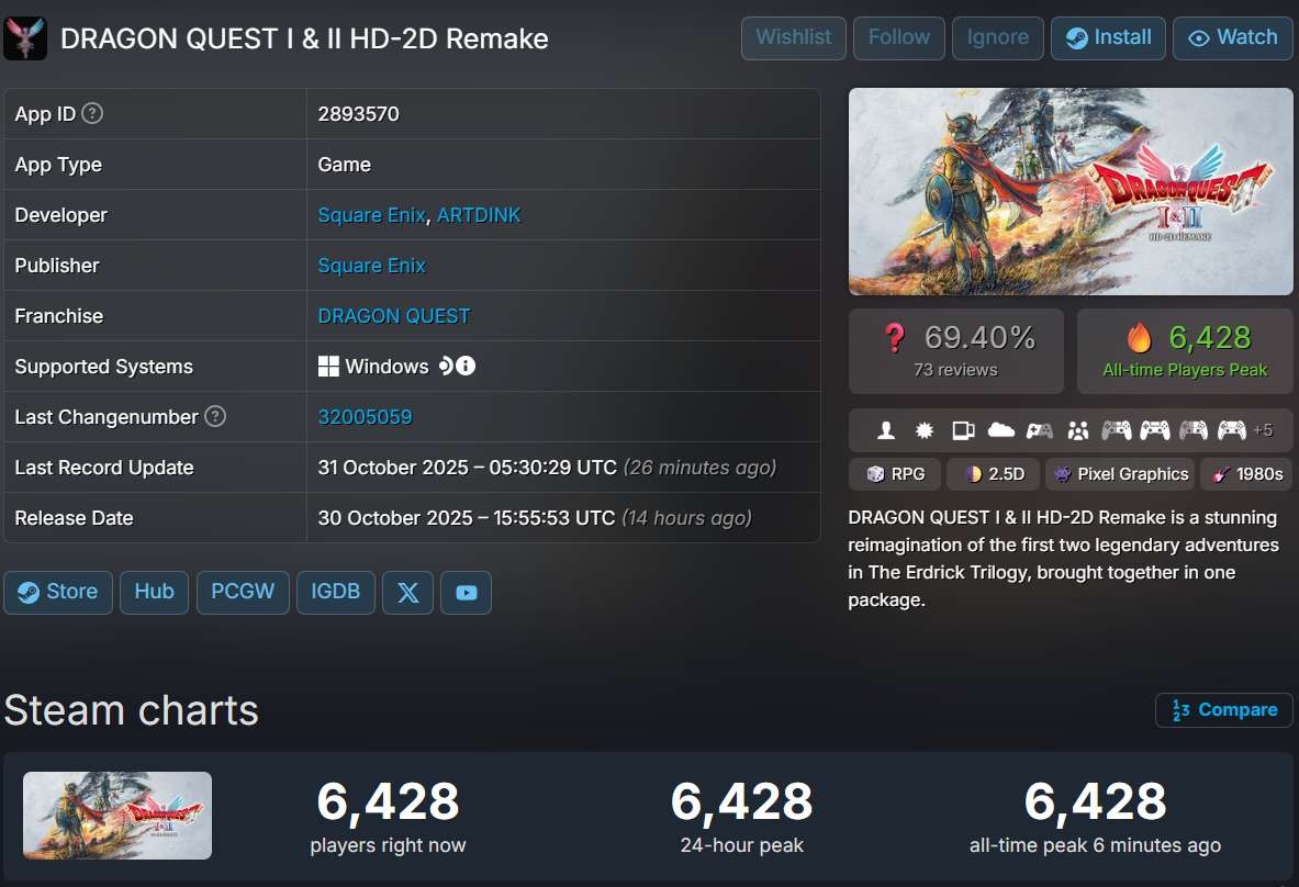 ドラクエ1&2、steamの同接がとんでもない事になるwww
