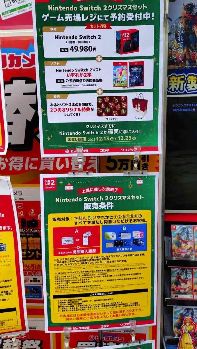 ビックカメラ「Switch2とソフト2本買えばクリスマスまでに売ってやるぞ😁」