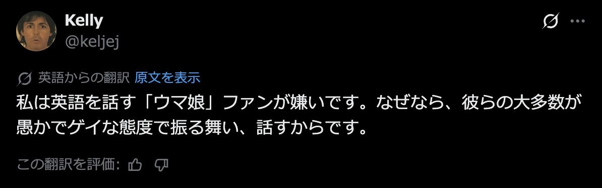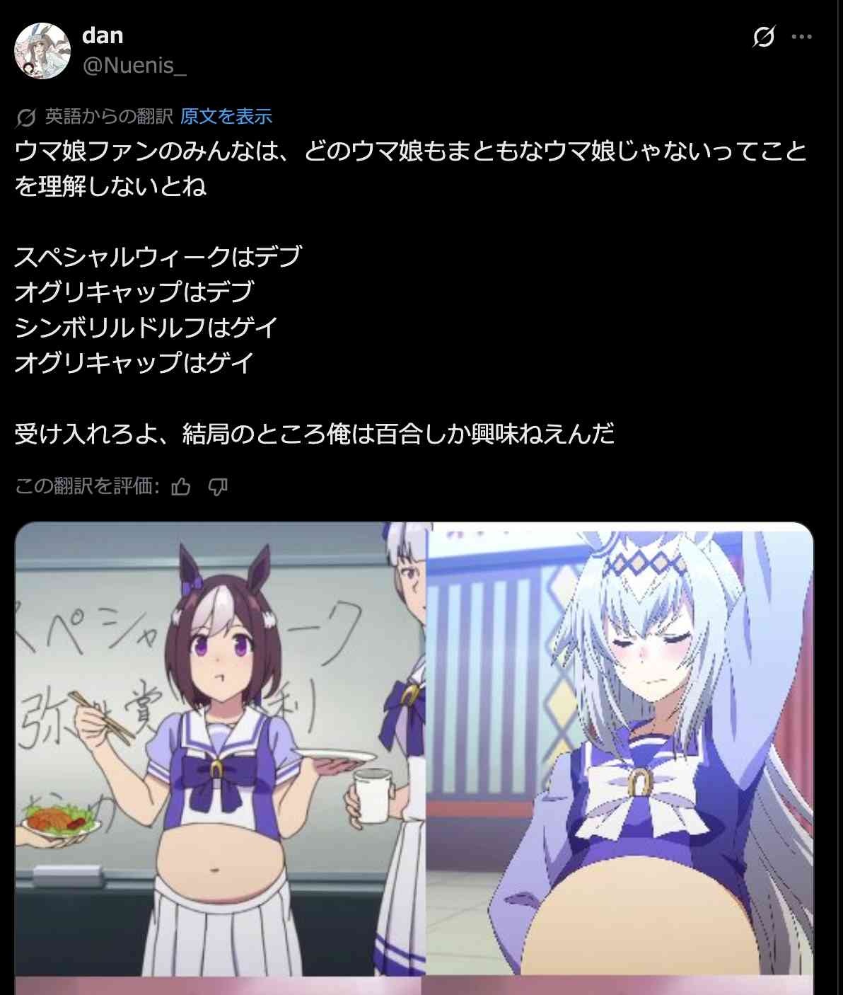 - 競走馬女体化の萌え豚コンテンツでなんでゲイがどうのこうのって話になるんだよ…