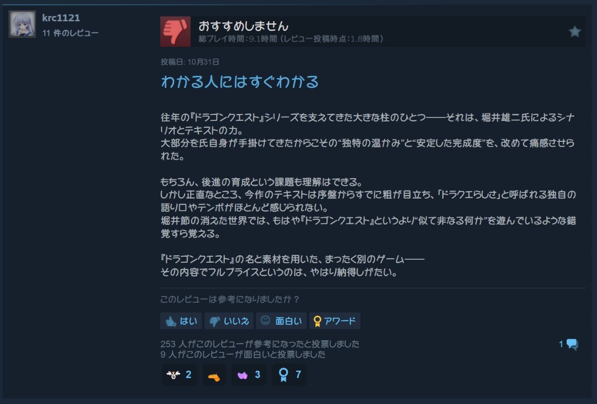 DQ3よりさらに評価落ちてるような - 3 : 2025/11/02(日) 10:38:21.528 ID:Hr/ydBKlE