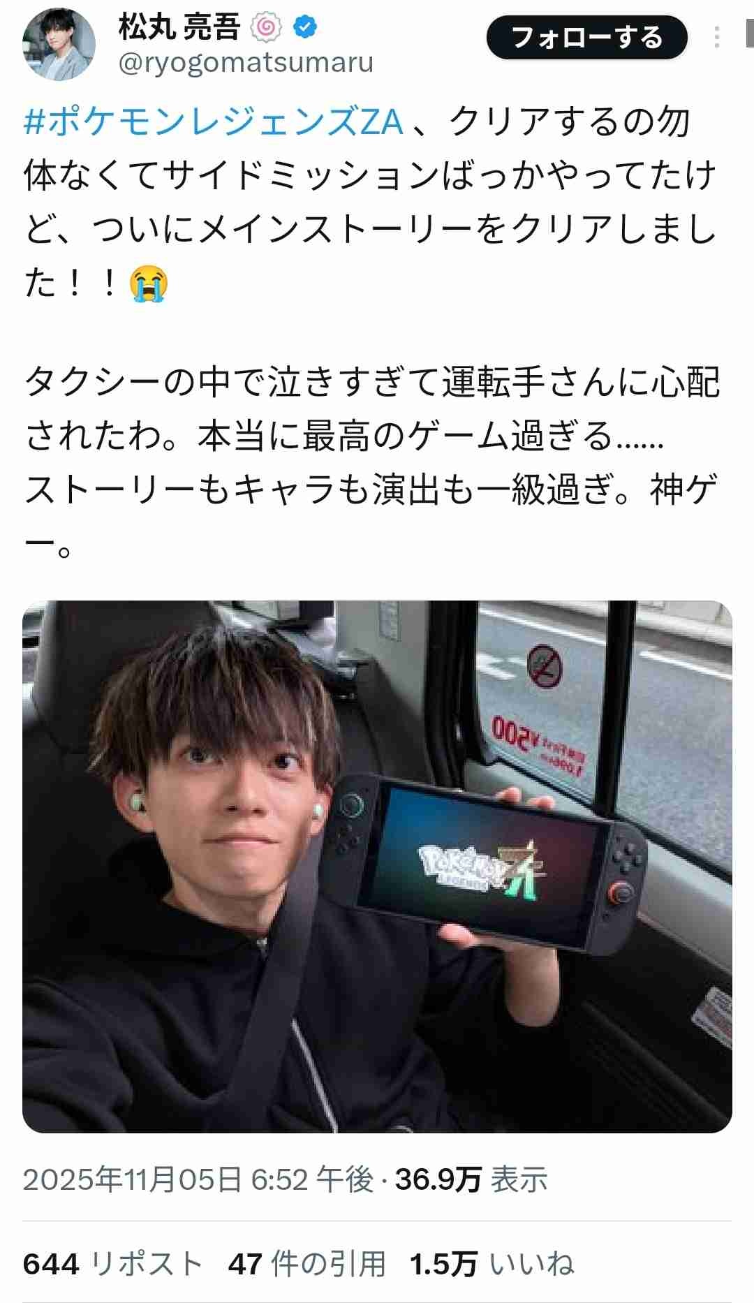 有名イケメン俳優「ポケモンZAは全てが一級品のゲームで号泣した。神ゲー」