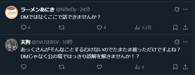 悪行バラされてるのにDMで話す意味あるんかこれ?