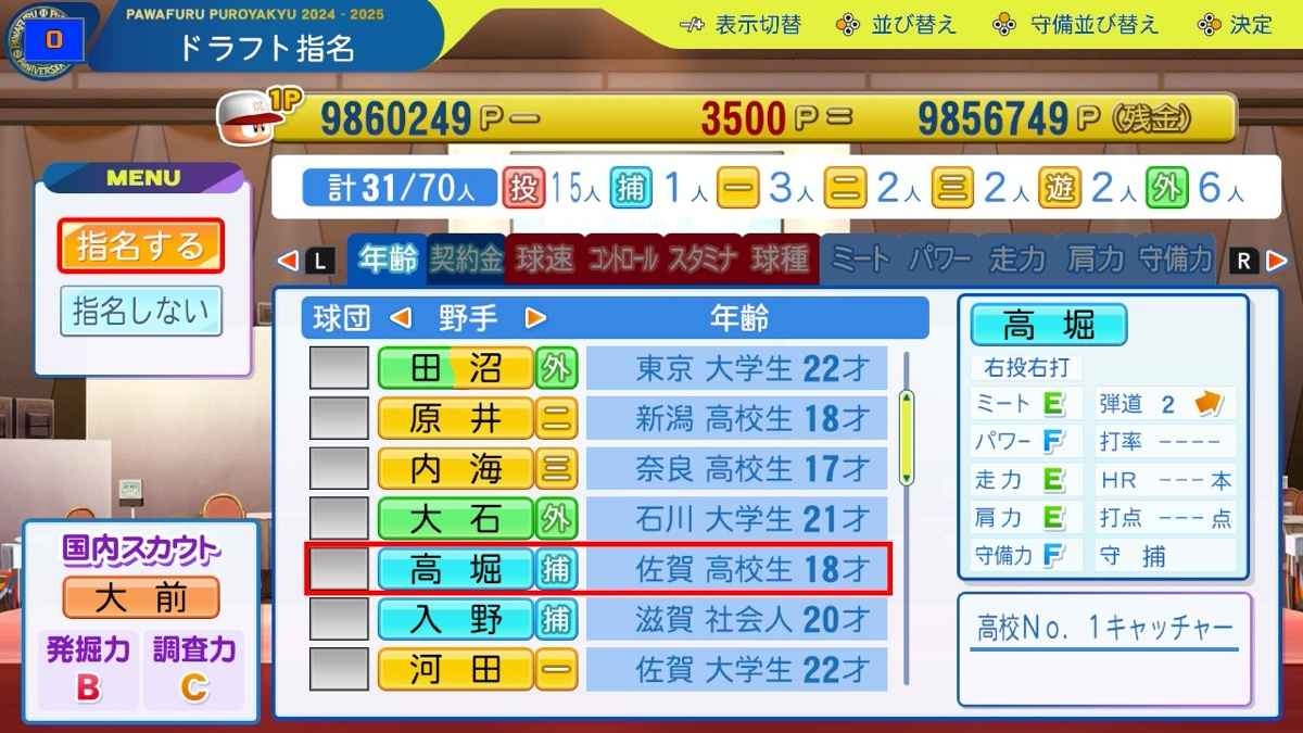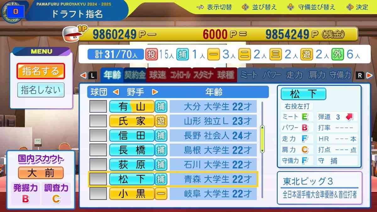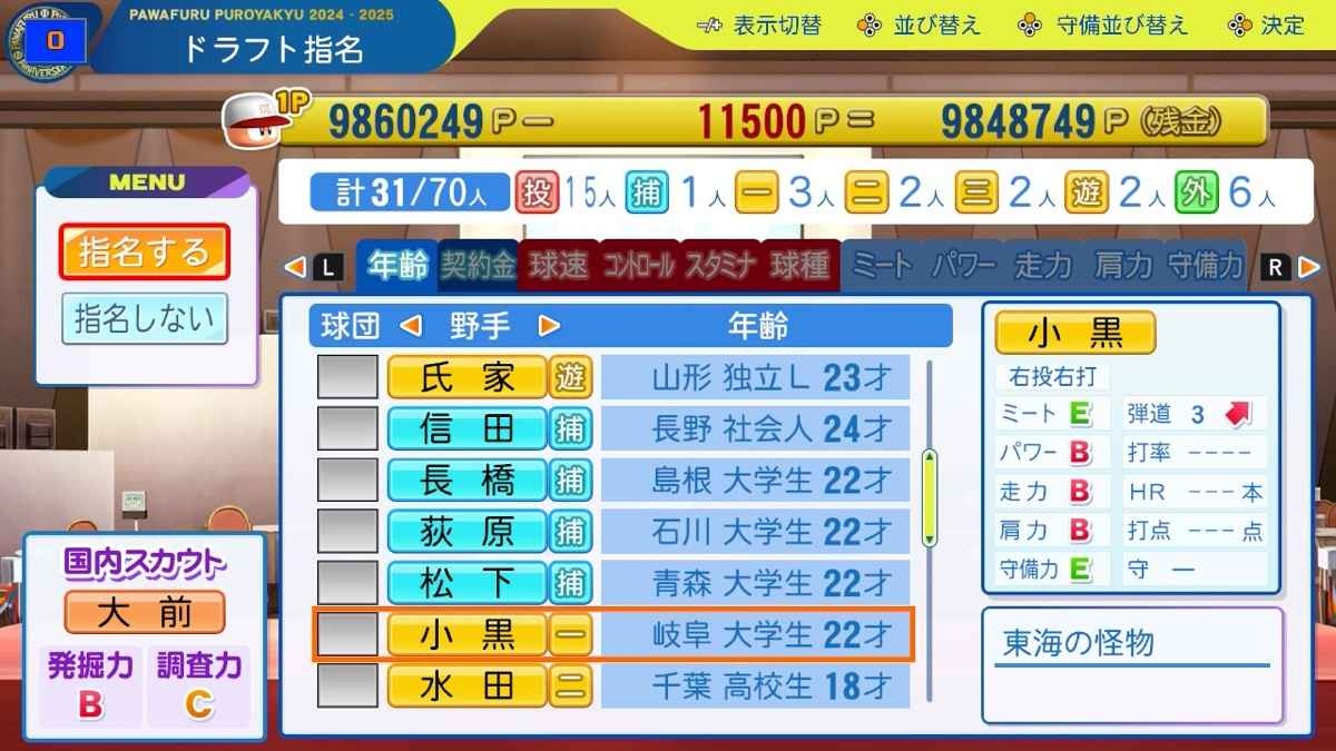 ドラフト指名選手の最下位選手はエッヂ民の安価でポジションや特徴を集計の上決定する(例:左打ちの即戦力パワーが高い外野手)