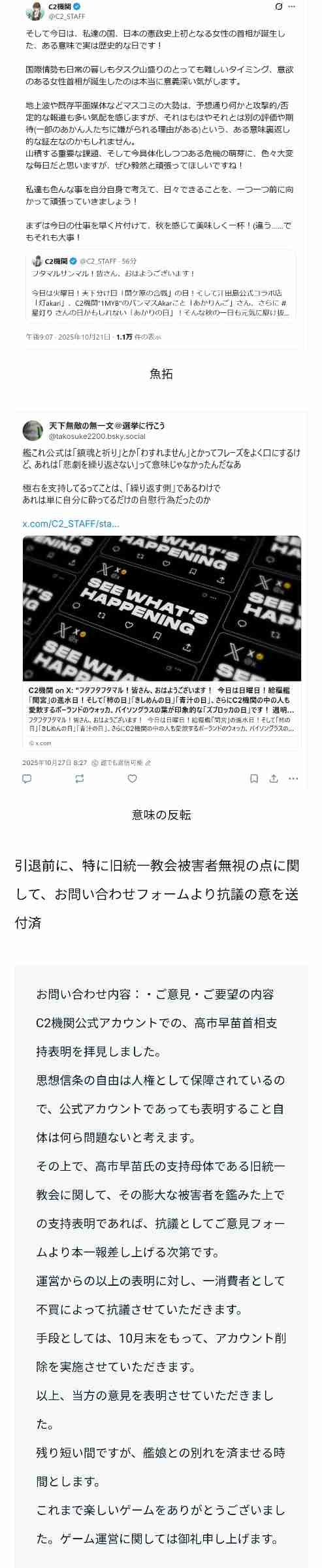 古参艦これプレイヤー、公式の政治発言のせいで引退してしまう
