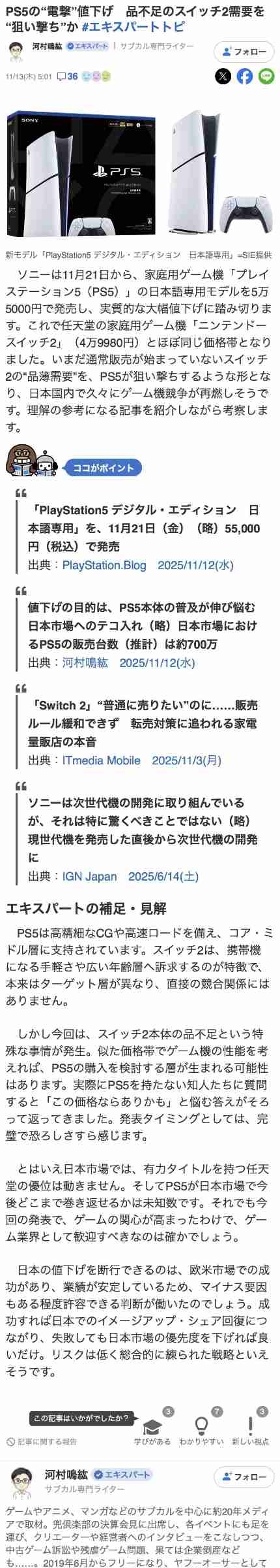 サブカル河村「PS5の下げは完璧なタイミングで恐ろしさすら感じる。スイッチ2品薄需要を狙い撃ち