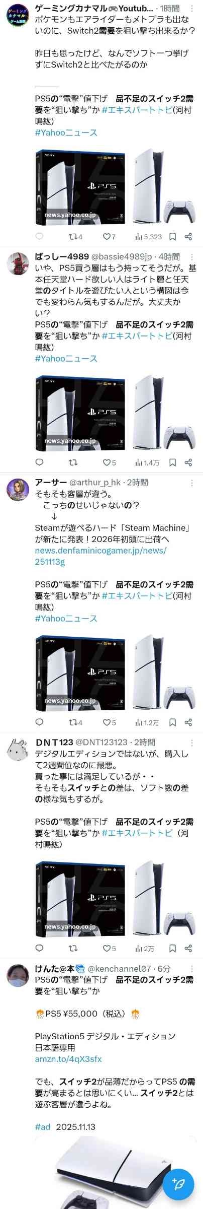 - PS5の“電撃”値下げ 品不足のスイッチ2需要を“狙い撃ち”か #エキスパートトピ