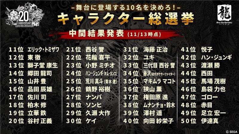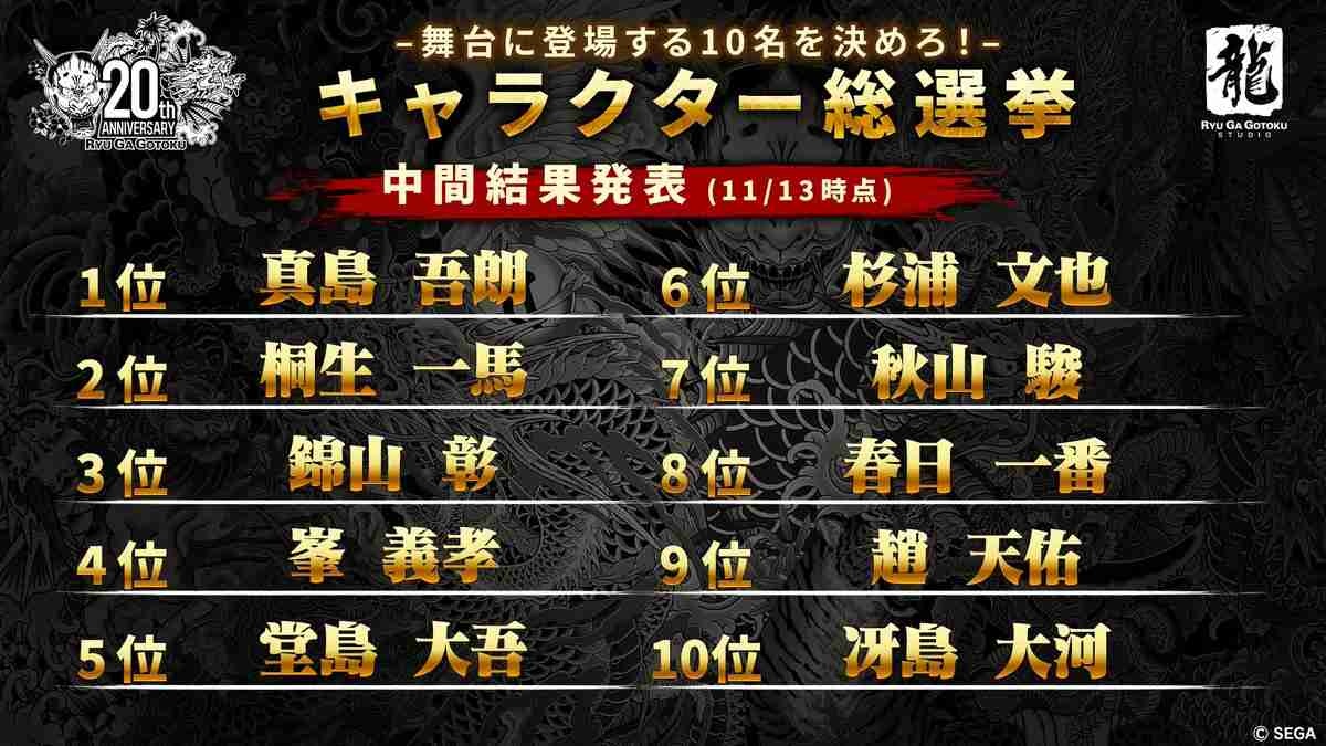 龍が如くの人気投票、桐生一馬さんが1位を獲得