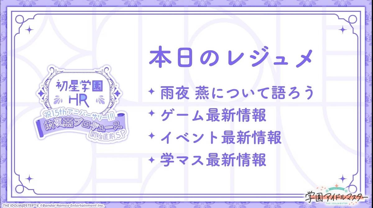 【生配信】学園アイドルマスター「初星学園HR~祝1.5thアニバーサリー!!!雨夜 燕プロデュース開始直前SP~」