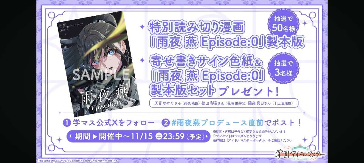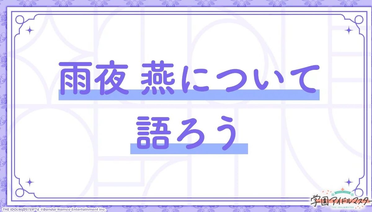 学マス1.5周年アニバーサリーを記念して、「雨夜 燕プロデュース開始直前SP」の特別バージョンでお届けいたします!