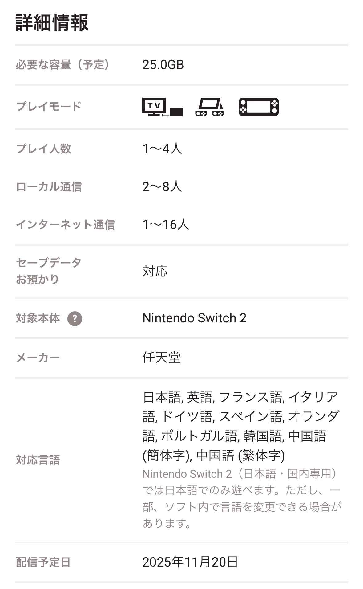 キーカード関連でサード云々言われるけど当の任天堂も結構な容量なんだよな - 34 : 2025/11/17(月) 15:13:44.16 ID:W1oDKXEx0