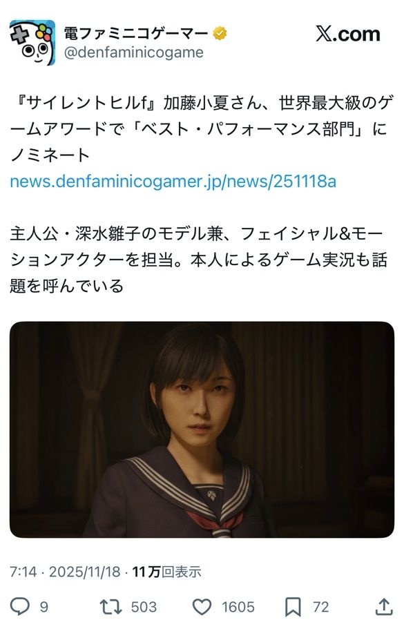 顔も声もモーションアクターも全部本人がやってる - 44 : 2025/11/18(火) 08:56:17.472 ID:4WMQRQ9zU