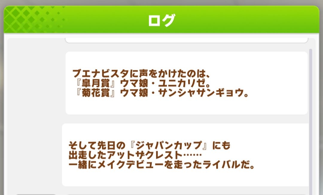 ブエナビスタのホームの会話で一人っ子って言ってたからアドマイヤジャパンくんはウマ娘にはおらんの確定してたな