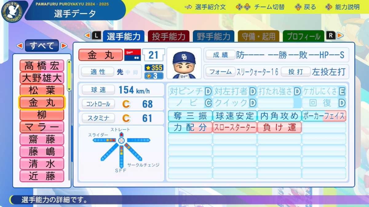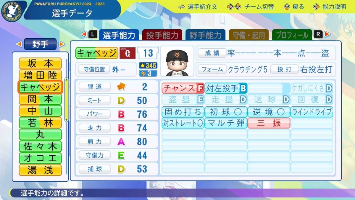 - プロスピで低弾道で出てきて終了時アプデでも低弾道のままのキャベツ