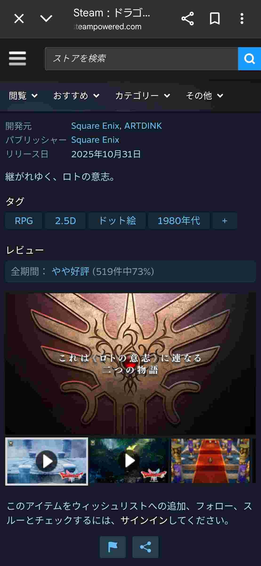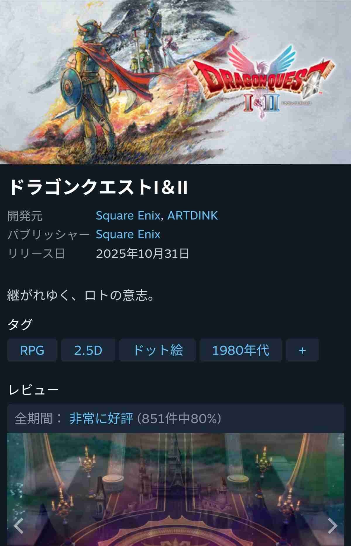 ドラクエ1&2、初期のネガキャンに負けず評価ジワ伸びによりついにSTEAM評価が"非常に好評"に到達