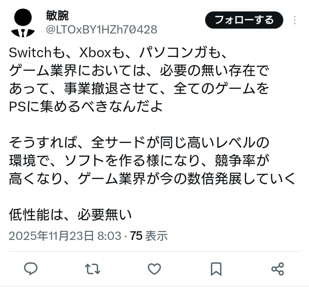 識者「XBOXも任天堂も撤退してPSにゲームを集めればゲーム業界は発展する」