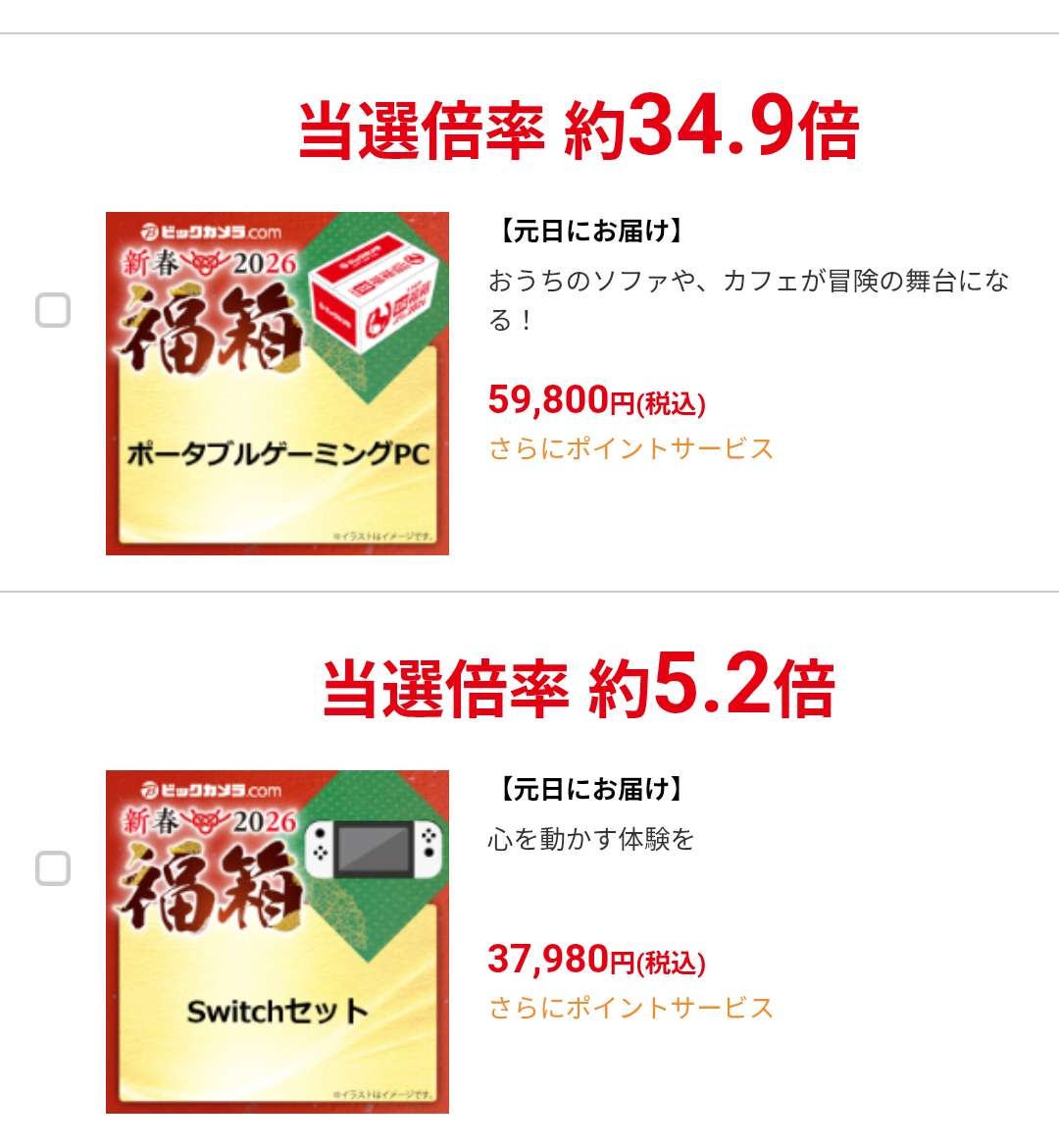 - さすがに6万の福袋に14万のモノ入れんだろ家電屋だって景気良いワケでもないだろうし