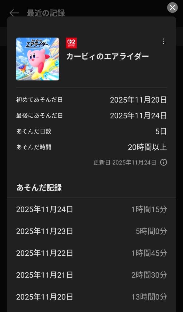 ぶーちゃん、カービィのエアライダーのプレイ時間みせて