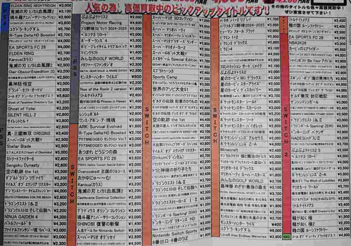 ドラクエ1・2買取価格、PS5版3200円、Switch2版3000円とSwitch2破れさる!キーカードの弊害