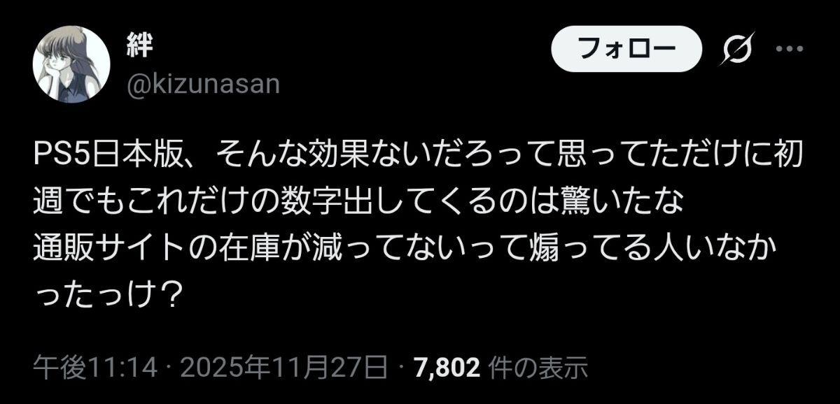 PS5国内版は1万を越えるとは思ってなかったから今回の数字には驚いたかな