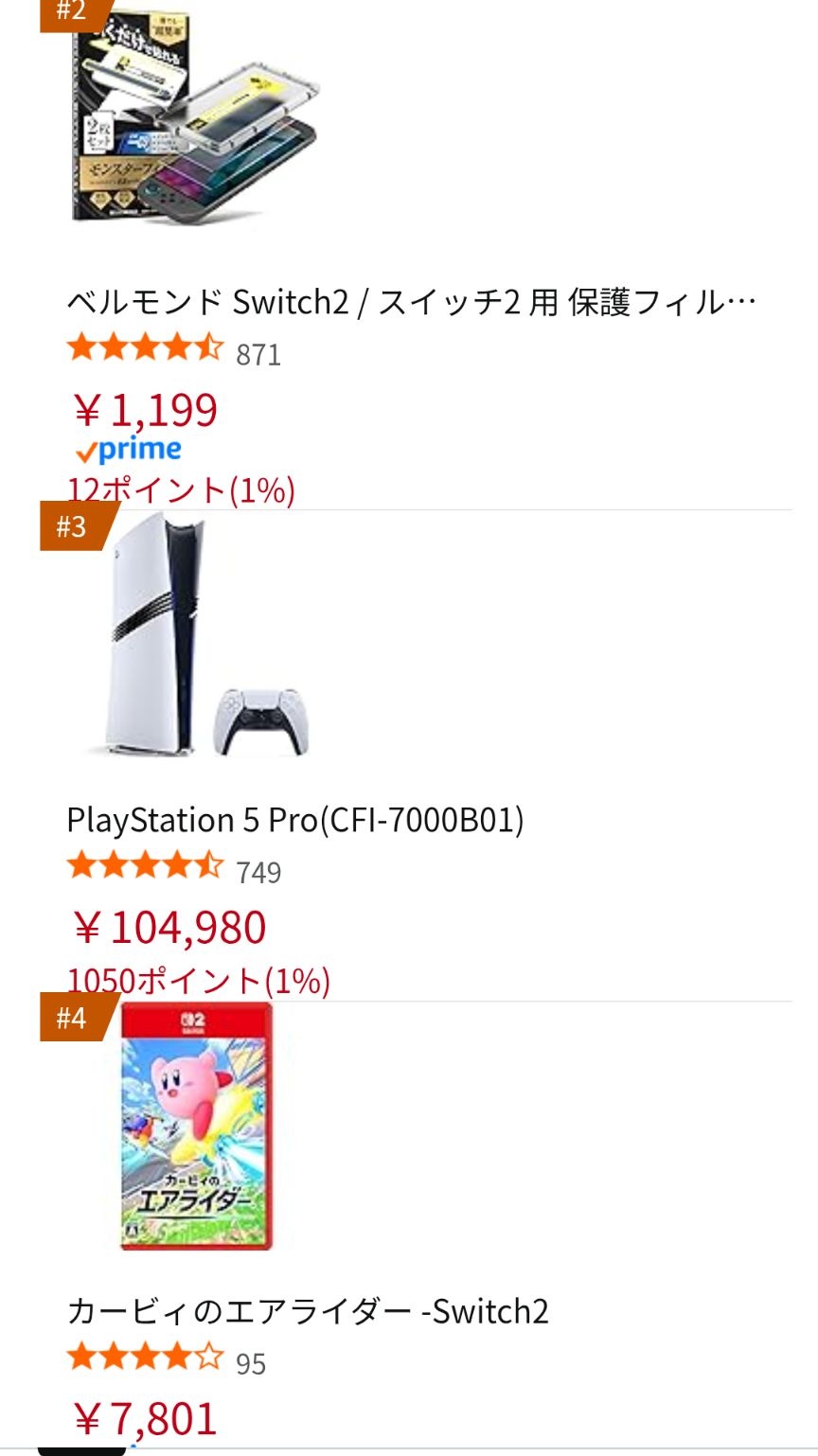 カービィのエアライダー、PS5proに負けAmazonランキング4位…