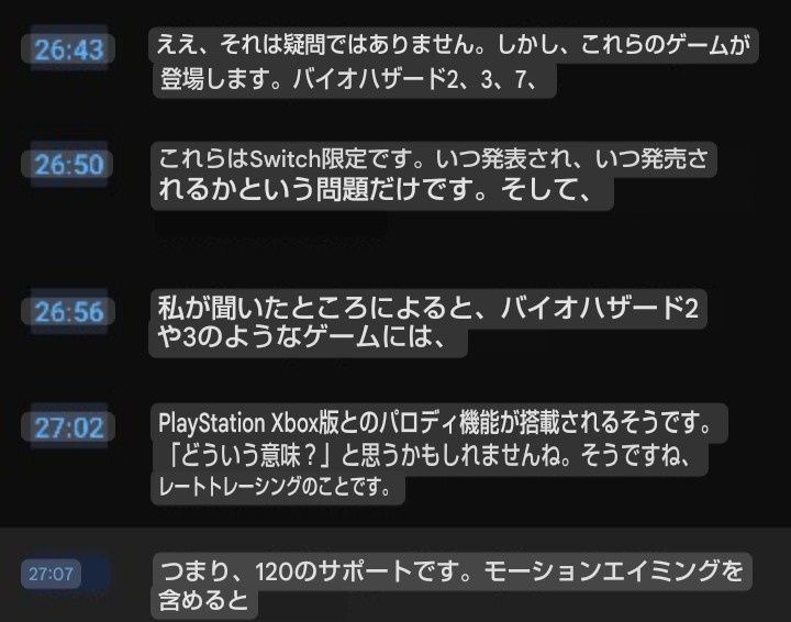 - バイオRE2はPS4無印でも45fpsぐらいで動作するゲームだし、PS4版と同じ程度の画質ならスイッチ2で120fpsも行けると思う