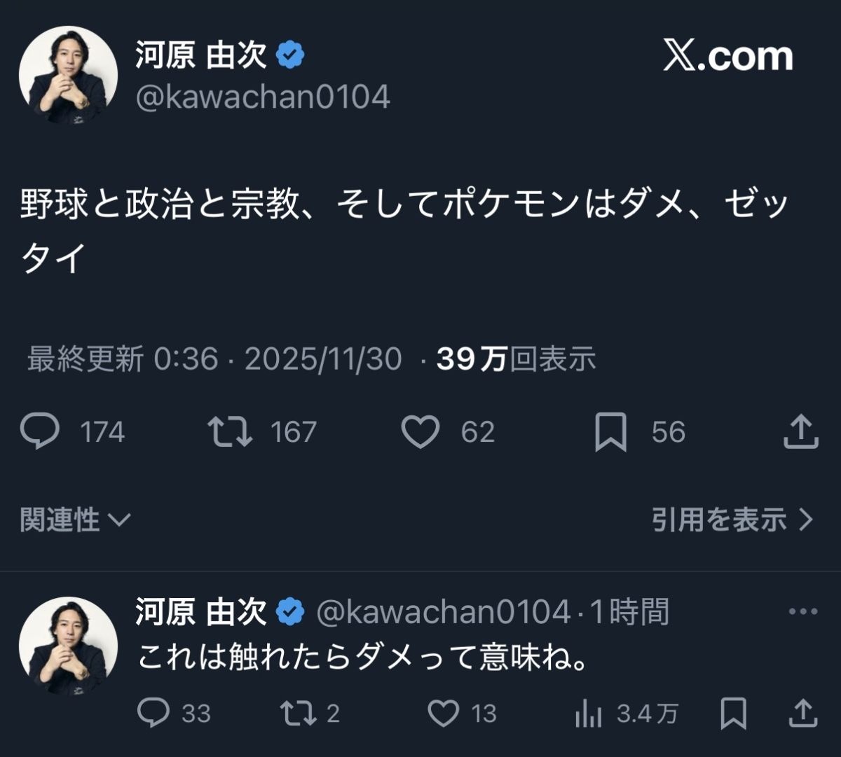 【正論】大企業代表取締役「野球と政治と宗教、あとポケモンの話題はダメ、絶対。」→賛同の嵐