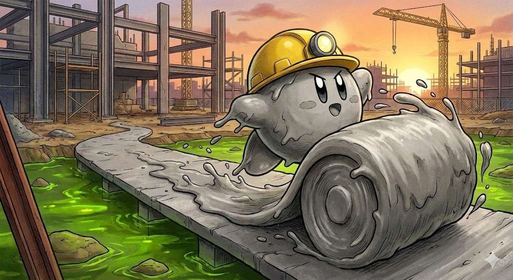 【見た目】 工事用ヘルメットを被り、ドロドロした灰色の液状ボディになっている。